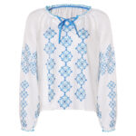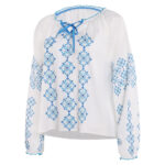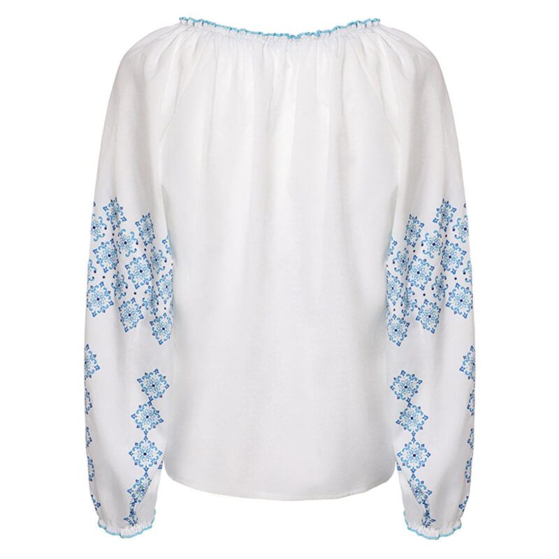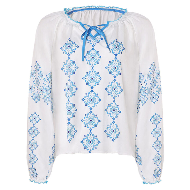 Entrez dans la peau du personnage avec le costume soigneusement détaillé, inspiré de ABBA Anni-Frid Synni Lyngstad Chemise Bleu et Blanc.