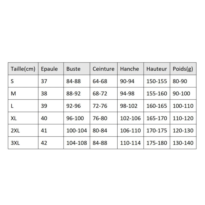 Disponible en plusieurs tailles : L, M, S, XL, XXL, XXXL. Consultez le guide des tailles avant de commander.