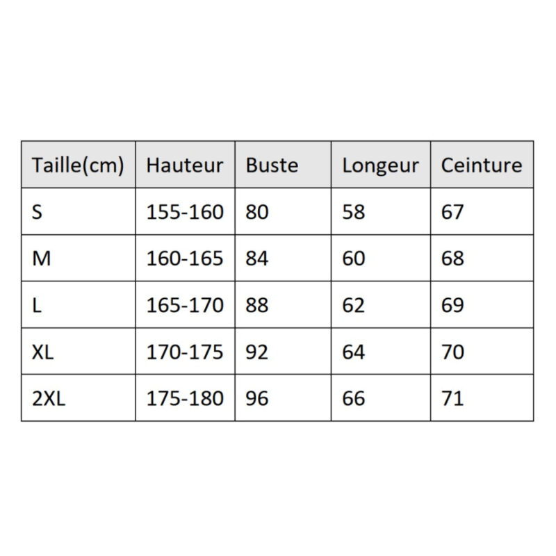 Cet article est proposé en L, M, S, XL, XXL pour s’adapter à toutes les morphologies.