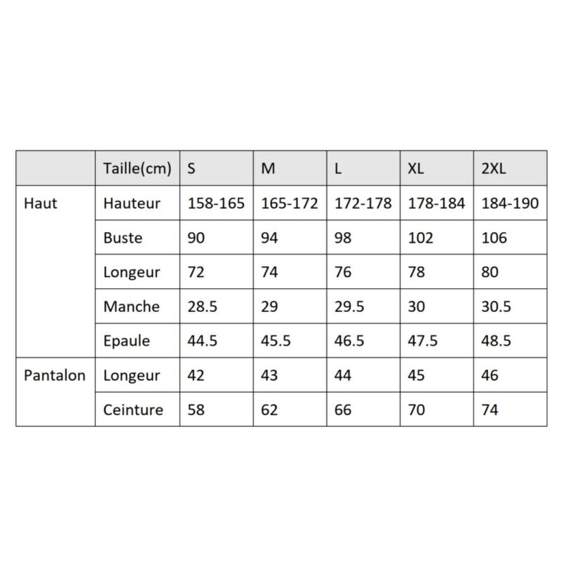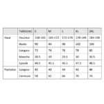 Tour de poitrine (cm)Tour de taille (cm)Tour de bassin (cm)Taille à commanderTaille à commanderTaille à commander