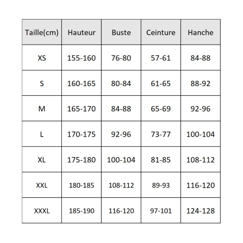 Disponible en plusieurs tailles : L, M, S, XL, XS, XXL. Consultez le guide des tailles avant de commander.