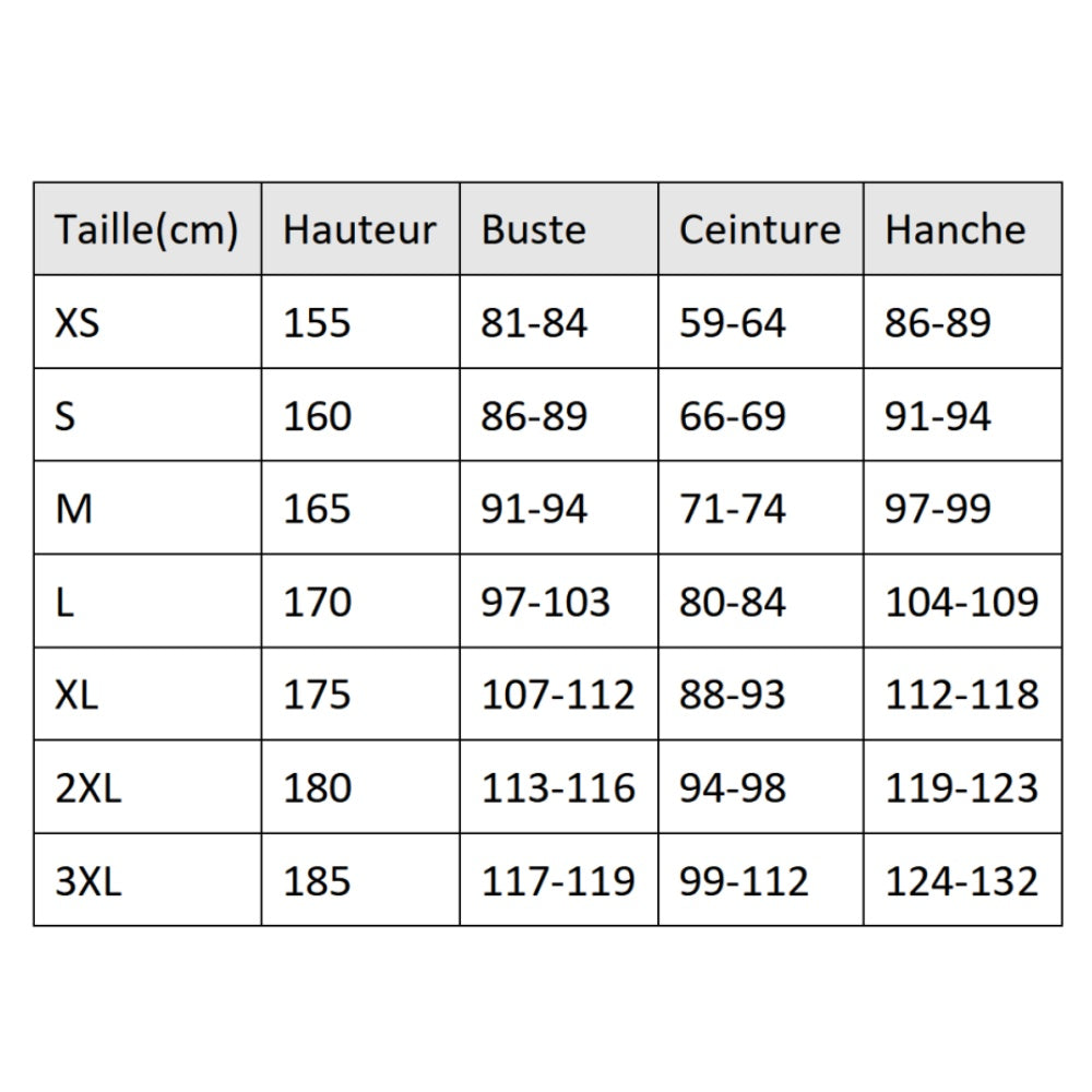 Disponible en plusieurs tailles : L, M, S, XL, XS, XXL. Consultez le guide des tailles avant de commander. Contenu : tenue complète, finitions détaillées.